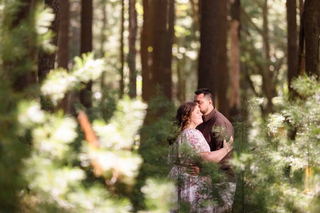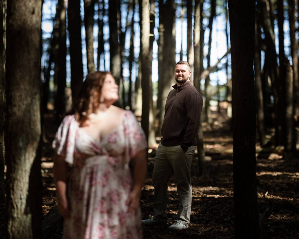 What makes it especially ideal for fall engagement photos is the way the pine canopy filters light: soft, directional, and cinematic. The new undergrowth we noticed during Julia and Mike’s session added fresh life and a beautiful green contrast to early autumn’s amber palette.