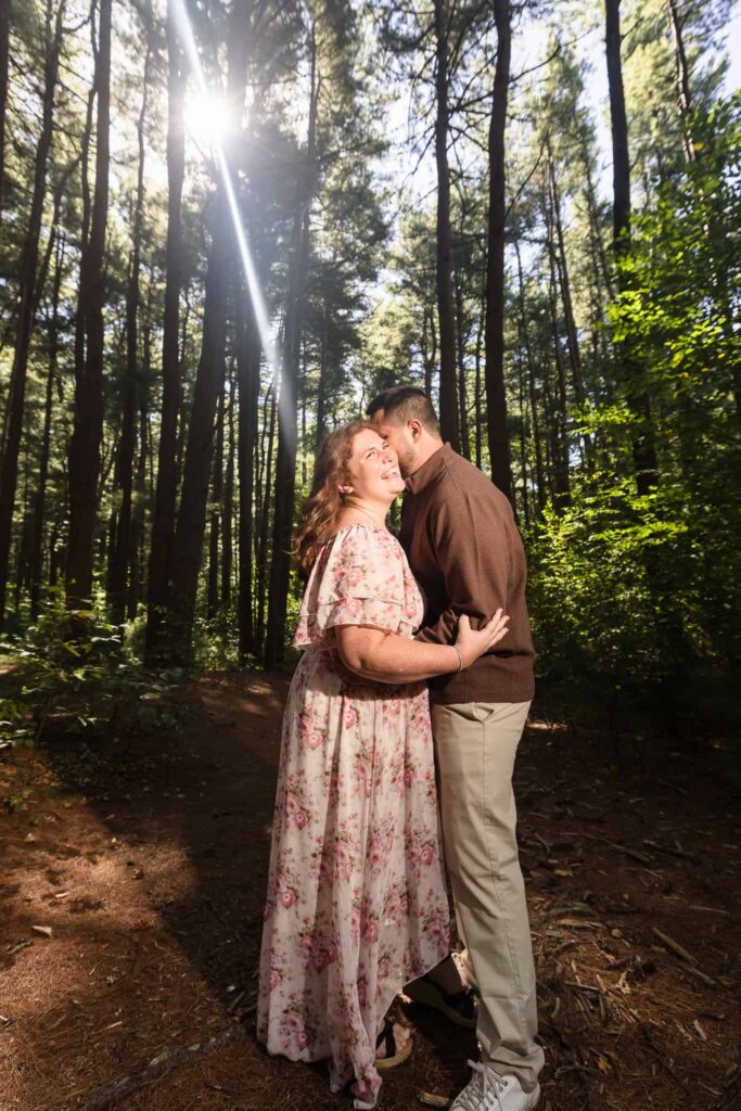 Set in the heart of Middle Island, Long Island, this secluded preserve offered the perfect backdrop for a session centered on connection. It wasn’t just the light filtering through the trees or the gentle rustle of pine needles underfoot. It was the way Julia leaned into Mike with such ease. The way he met her eyes, smiling. This session wasn’t just beautiful, it was deeply human.